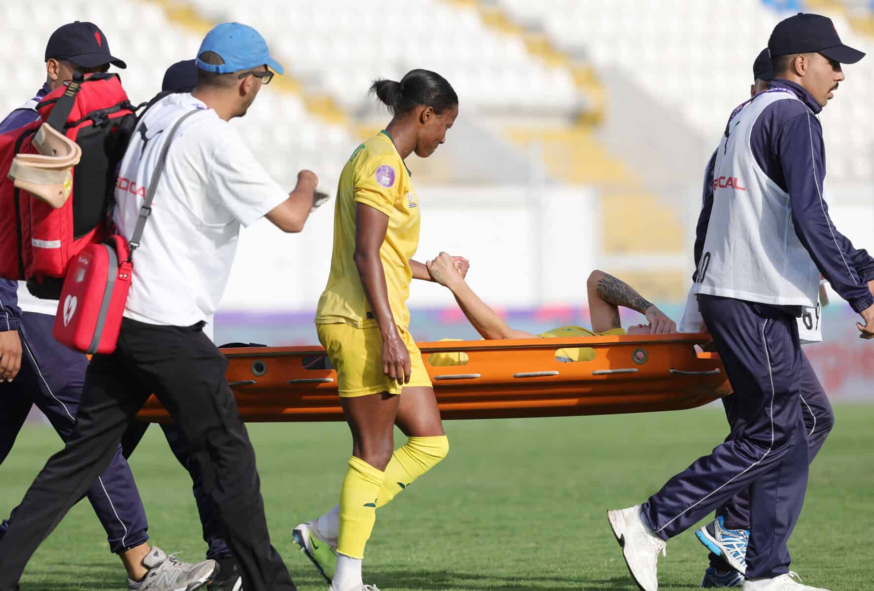 SAFA chief medical officer Dr Thulani Ngwenya has provided an update on Gabriela Salgado, who suffered a serious injury during Banyana Banyana’s 2-1 loss to Nigeria at the Larbi Zaouli Stadium in Casablanca on Tuesday night.