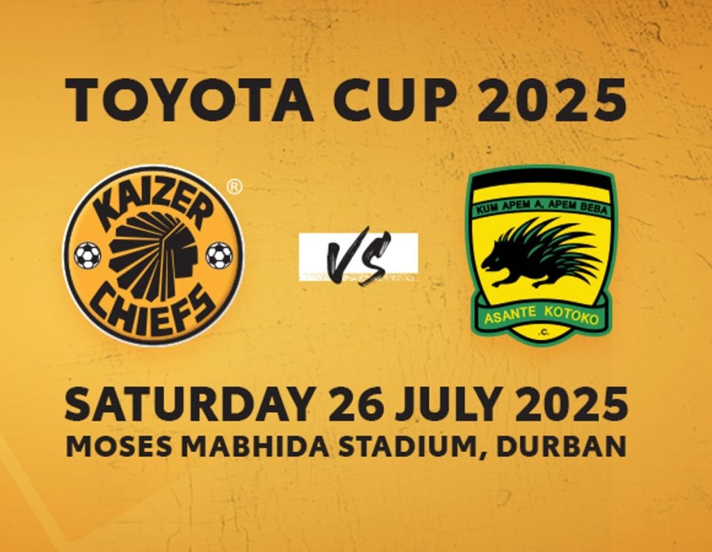 Durban will host a thrilling continental showdown when South Africa’s Kaizer Chiefs take on Ghana’s Asante Kotoko in the Toyota Cup on Saturday, 26 July 2025, at the iconic Moses Mabhida Stadium.