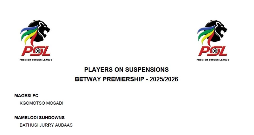 The PSL confirmed on Monday morning that the former TS Galaxy hard-tackling midfielder alongside Magesi FC’s Kgomotso Mosadi, are the only two players suspended for this midweek league clashes.
