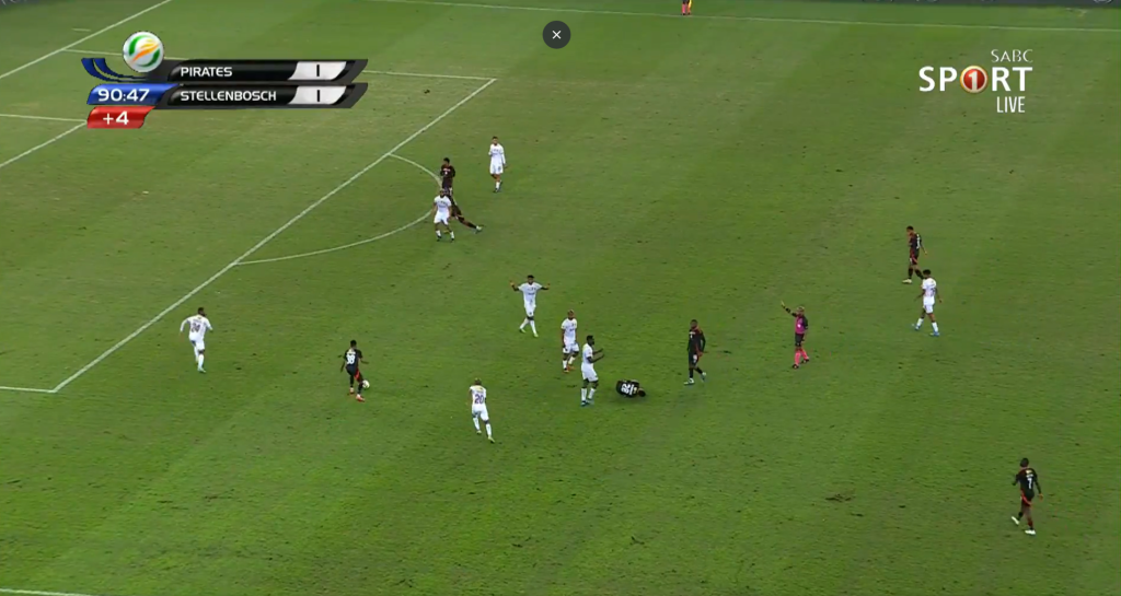 There was some controversy for Pirates’ second goal when a foul took place. Relebohile Mofokeng’s quick-thinking sent Tshegofatso Mabasa through on goal to score.